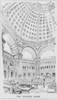 A new Congressional Library catalogue from the Government Printing Office guided researchers. To borrow a book, visitors first had to fill out and sign a slip called a “reader’s ticket,” with the title and author of the book they wanted. Once the slip was filled out, it was sent through a series of pneumatic tubes in the library which connected to various stacks and floors of books, where attendants would pull the book and send it down to the reading room floor within approximately five minutes. The book carrying apparatus installed throughout the library involved pneumatic tubes which ran all the way to the Capitol building. [The Evening Star. 1897. “Library Now Ready,” November 1, 1897.]