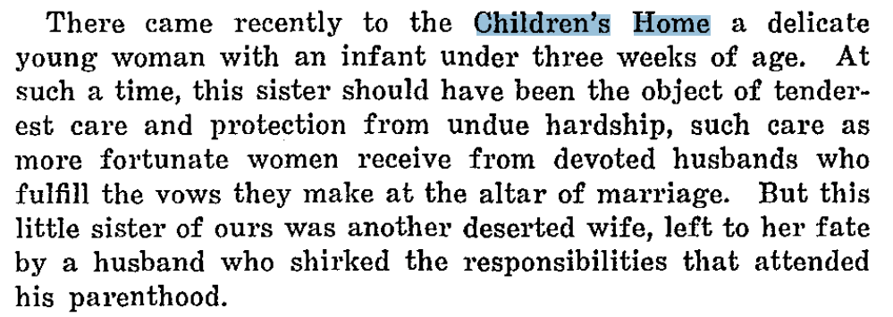 We therefore, present for the consideration of the conference the advisability of discontinuing the Children’s Home the work of providing for the dependent children who come under the care of the church to be conducted by the Social Services Bureau. It was approved. 1925.”