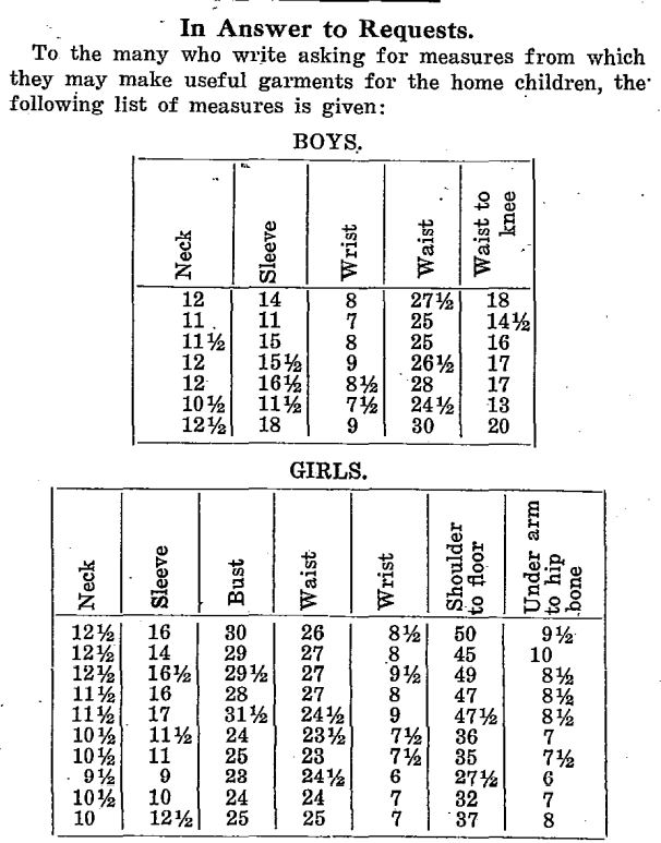 Often the Saints’ Herald and Zion’s Ensign reported the ages and sizes of children at the Home so that members could sew clothing for them.