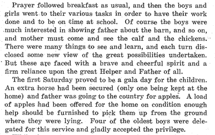 “It was a momentous thing, the adopting of a new father and mother at the Home”! This 1915 Saints’ Herald report gave us a good idea what a Day in the Life was like for the children with the arrival of Brother & Sister Briggs as the 2nd Managers of the Home.