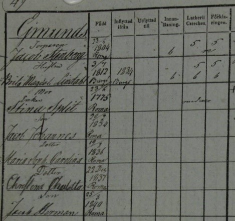 Sweden Household Examination Books 1806-1834 Ejmuns Inhyses, Roma, Gotlands, Gotland, Sweden. Stina Split born May 23, 1775