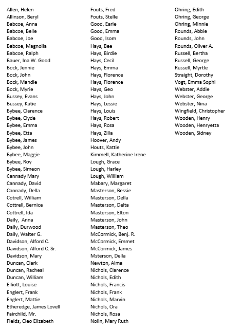 I utilized the 1910 United States Census for the state of Missouri. The census reveals the names of children who lived in the Taberville Township of St Clair, MO. They may have attended this school. I sorted them by age and approximate birth year.